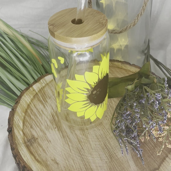 Each glass can is decorated with premium quality permanent vinyl. The vinyl is placed by hand which means not every glass will be lined up exactly the same. Cups are NOT sealed with epoxy.